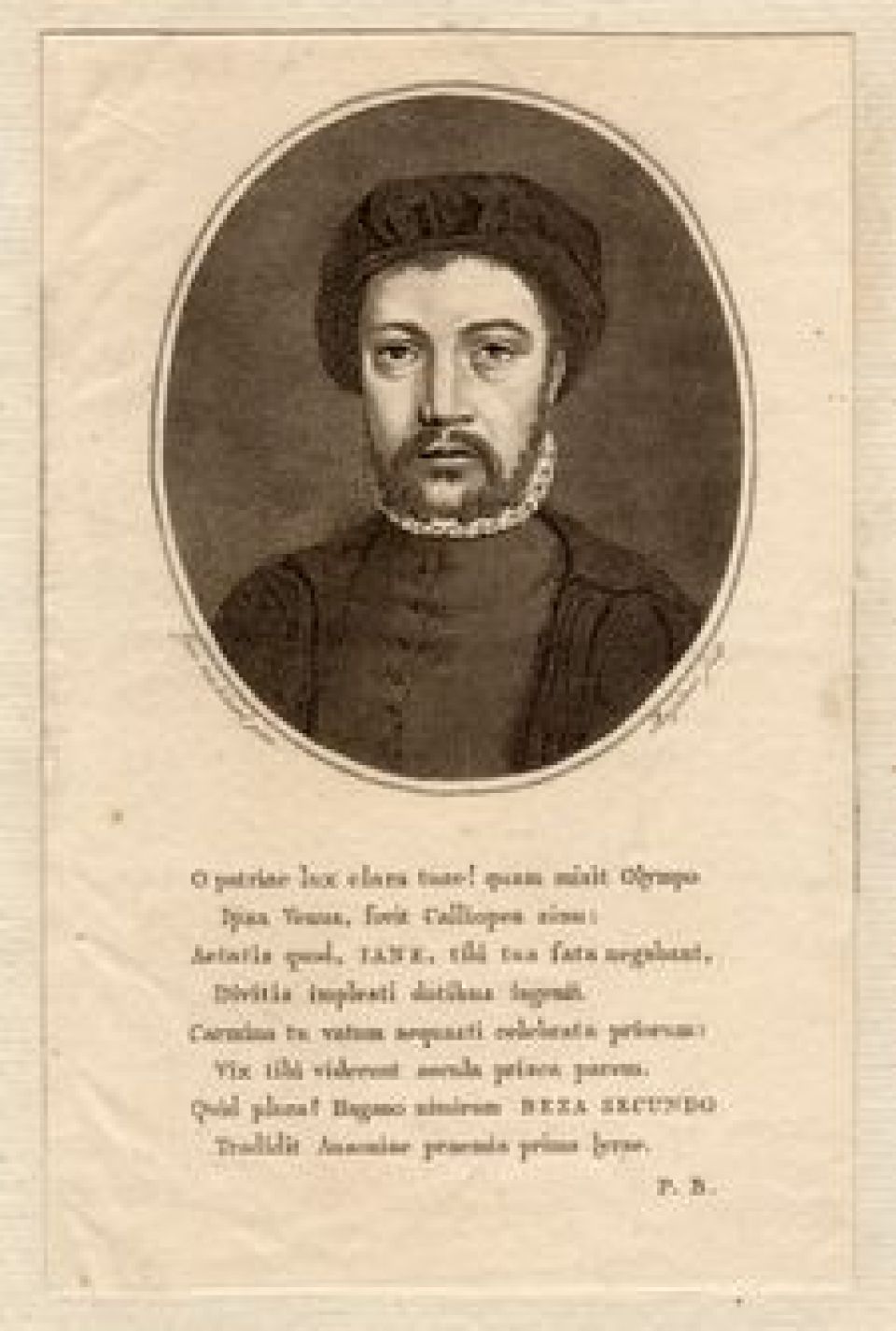 De ets is gemaakt naar een schilderij van Jan van Scorel (1495-1562). Van Scorel was als houtsnijder, tekenaar en schilder ondermeer werkzaam in Duitsland, Italië, Palestina, Haarlem en Utrecht (Waller). Hij was bevriend met Janus Secundus (Würzbach). Janus Secundus (1511-1536) was een Latijns dichter, redenaar, rechtsgeleerde, schilder en beeldhouwer afkomstig uit Den Haag (Eijnden en Van der Willigen, deel I, p. 12-17)..