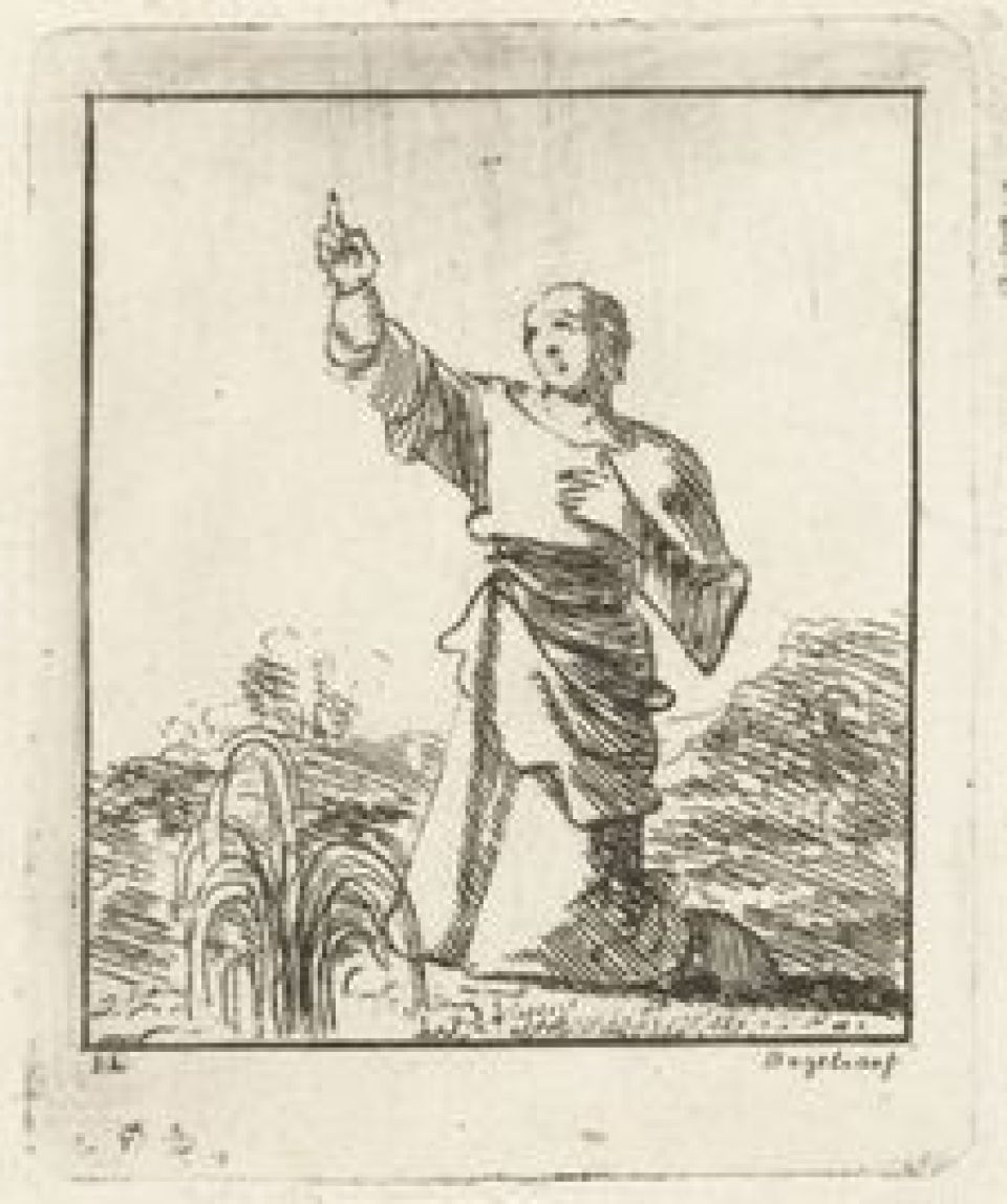 Naar een tekening van Jan Luyken (1649-1712) met de titel Jezus en de ziel beschouwen de sterrenhemel. Zie de website van Geheugen van Nederland. Tik in het zoekveld TA13571 en u vindt deze tekening. Bagelaar heeft alleen het linker gedeelte van de tekening overgenomen. De ets van Jan Luyken naar eigen tekening is te vinden in Jezus en de ziel, 1714 (p. 81).