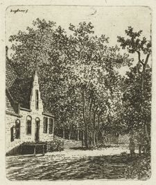 Bij een ets staat met potlood geschreven: De herberg van den boer Klugt buiten het Haagsche Bosch.