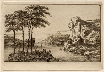 Deze ets is vervaardigd naar tekening T066. Op de ets staan 4 bomen, op de tekening slechts 3.