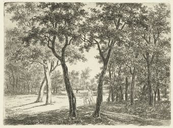 E131 Twee personen die tussen de bomen lopen
